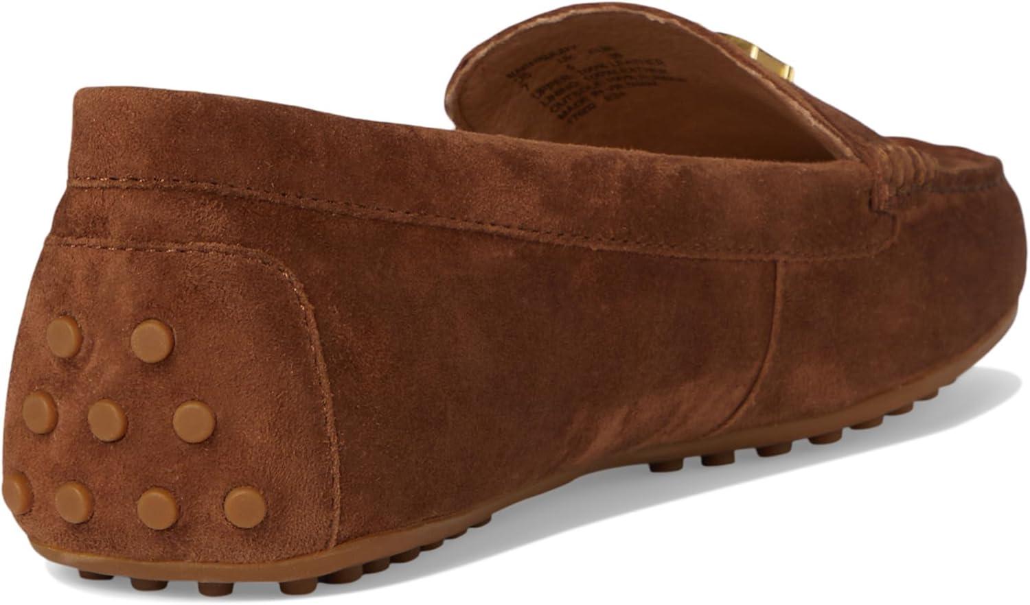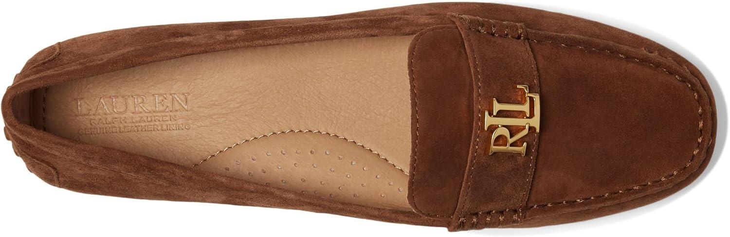Lauren’s signature logo adds unmistakable style to this modern suede loafer, which is lined with full-grain leather and finished with an exclusive rubber nub outsole.0.25″ (10 mm) heel height.Rounded toe.Slip-on styling.”LRL” metal logo at the vamp.Rubber nub outsole.Padded leather insole.Upper and lining: leather.Brush away any surface dirt with a clean, soft brush.Imported.Vietnam