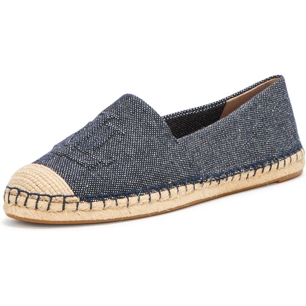 A must-have for the warm-weather season, this iteration of the Cameryn espadrille is crafted with textured cross-dyed canvas and features a prominent “LRL” bombé logo at the vamp. This style is finished with blanket stitching for an artisanal feel. 0.75″ (20 mm) heel height. Rounded toe. Braided jute toe cap. Slip-on styling. Oversize “LRL” bombé logo at the vamp. Padded forepart and leather sock patch with a “Lauren Ralph Lauren”–debossed logo. Jute-and-rubber outsole. Upper: cotton. Lining: leather, cotton. Wipe clean with a soft, dry cloth. Imported.