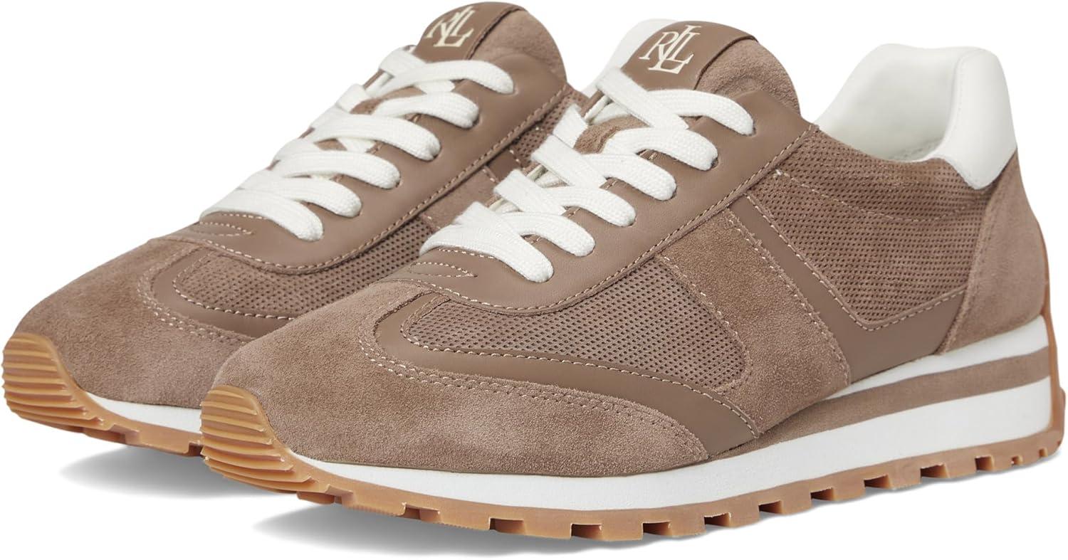 Lauren Ralph Lauren Women's Dani Perforated Suede Sneakers(Taupe Brwn/Taupe Brwn/Snw Wht)