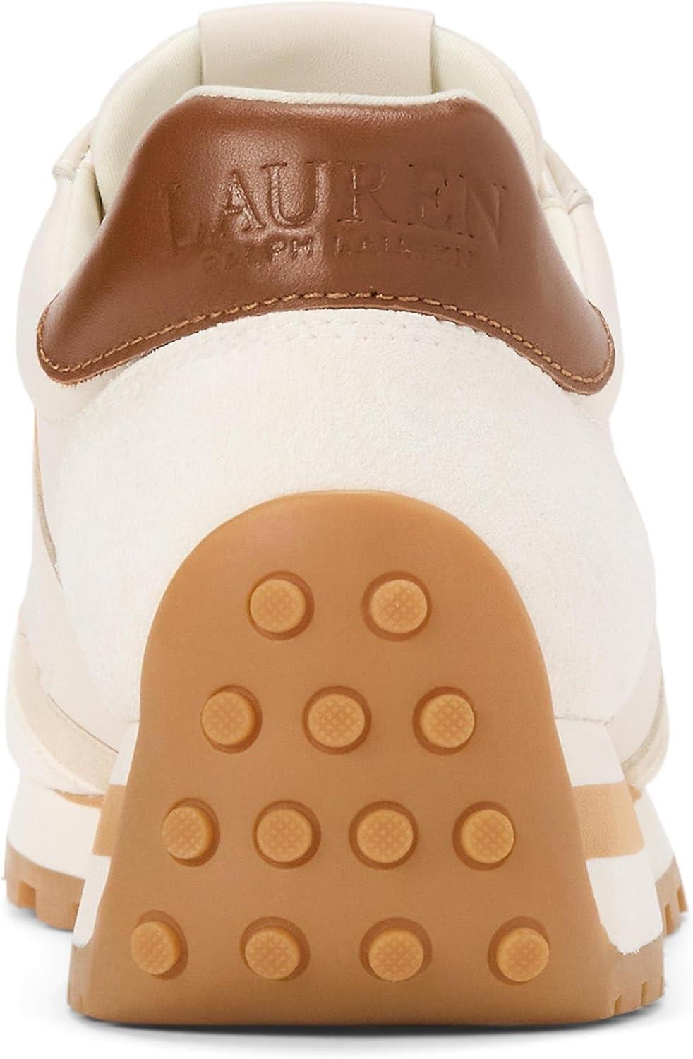 It's time to give a modern lift to your cool and casual style with the LAUREN Ralph Lauren Dani Sneakers. Endlessly versatile and comfortable, these shoes are crafted with a durable leather and nylon upper perfectly teamed with a breathable leather, polyester, and polyurethane lining and a shock-absorbent, grooved, foam-padded insole. The 'LRL' logo at the tongue and the debossed logo at the back counter add an iconic touch to these shoes while the EVA midsole enhances their comfort level. Lace-up closure. Round toe. Padded tongue and collar. Flexible rubber outsole.