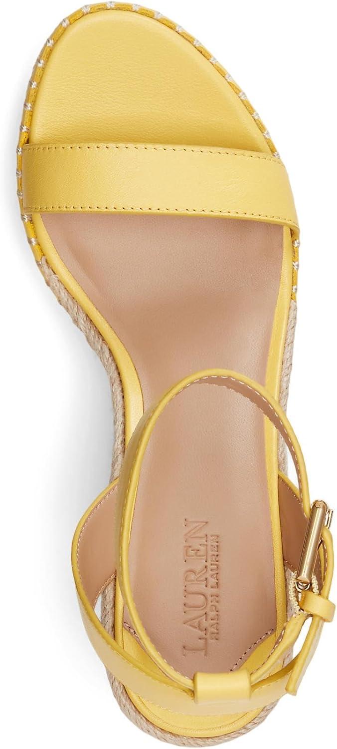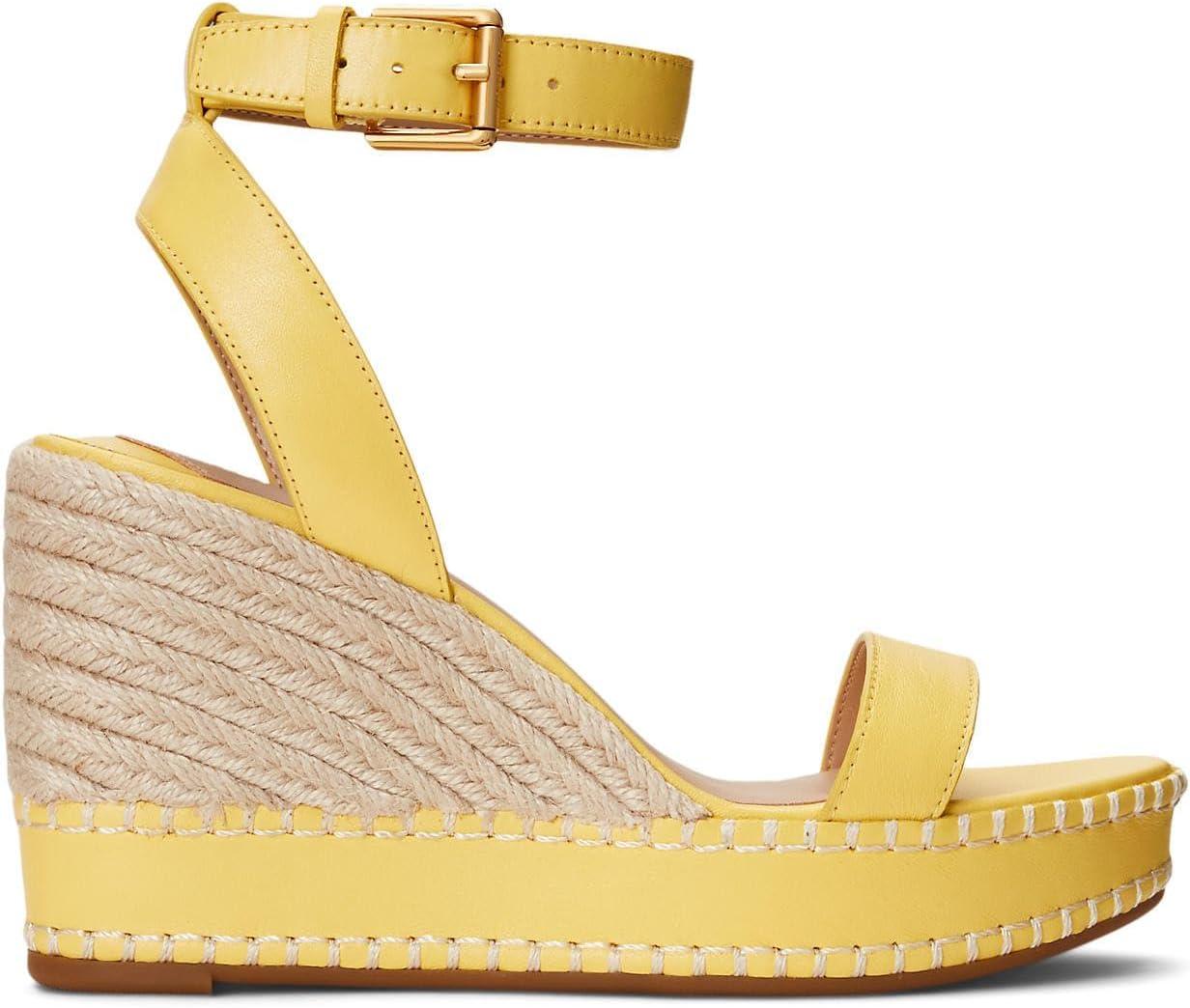 A sumptuous burnished leather construction offers a sophisticated take on Lauren Ralph Lauren’s iconic espadrille. Punctuated with a signature buckled closure, its wedge silhouette creates a leg-lengthening effect.
