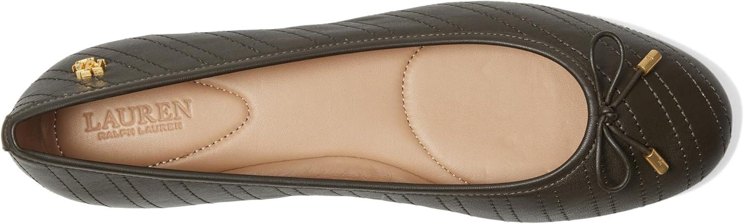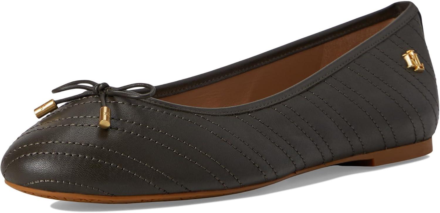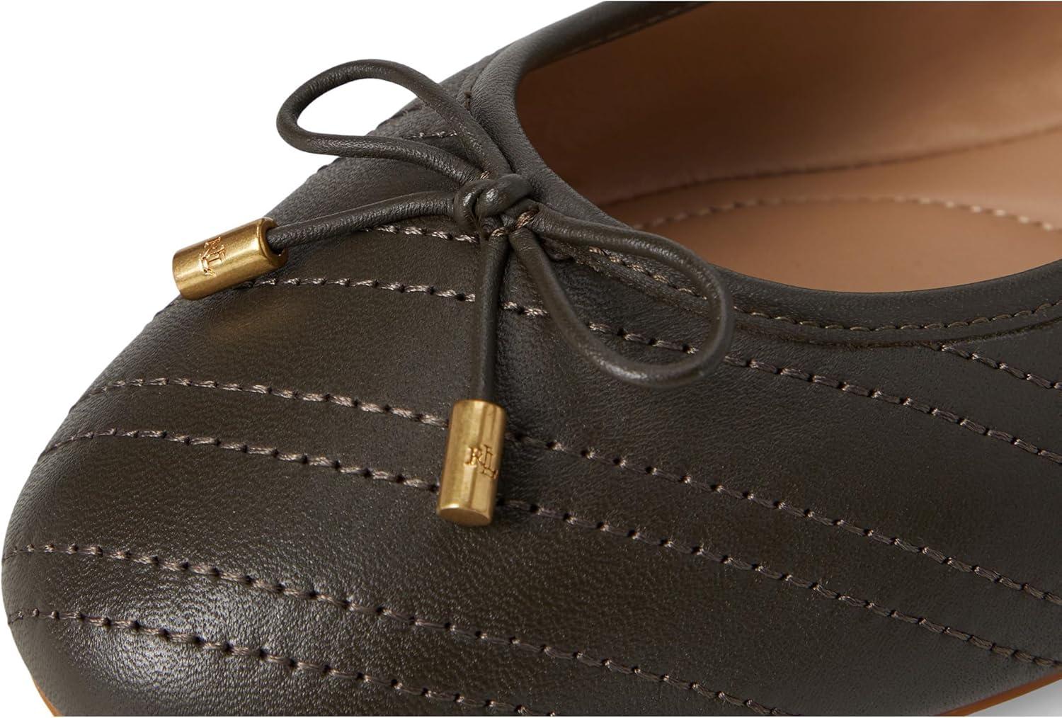 Walk in comfort, step into style wearing LAUREN Ralph Lauren Jayna Stitched Leather Flat. Crafted from sumptuous full-grain leather, this sophisticated flat features tonal striped stitching that adds a refined dimension to your style. The feminine leather bow at the vamp, adorned with signature “LRL”-engraved metal hardware, offers a touch of luxury with every step. Designed with a rounded toe and effortless slip-on styling, the Jayna flat ensures all-day comfort thanks to its leather upper, insole, and lining, paired with a durable rubber outsole.