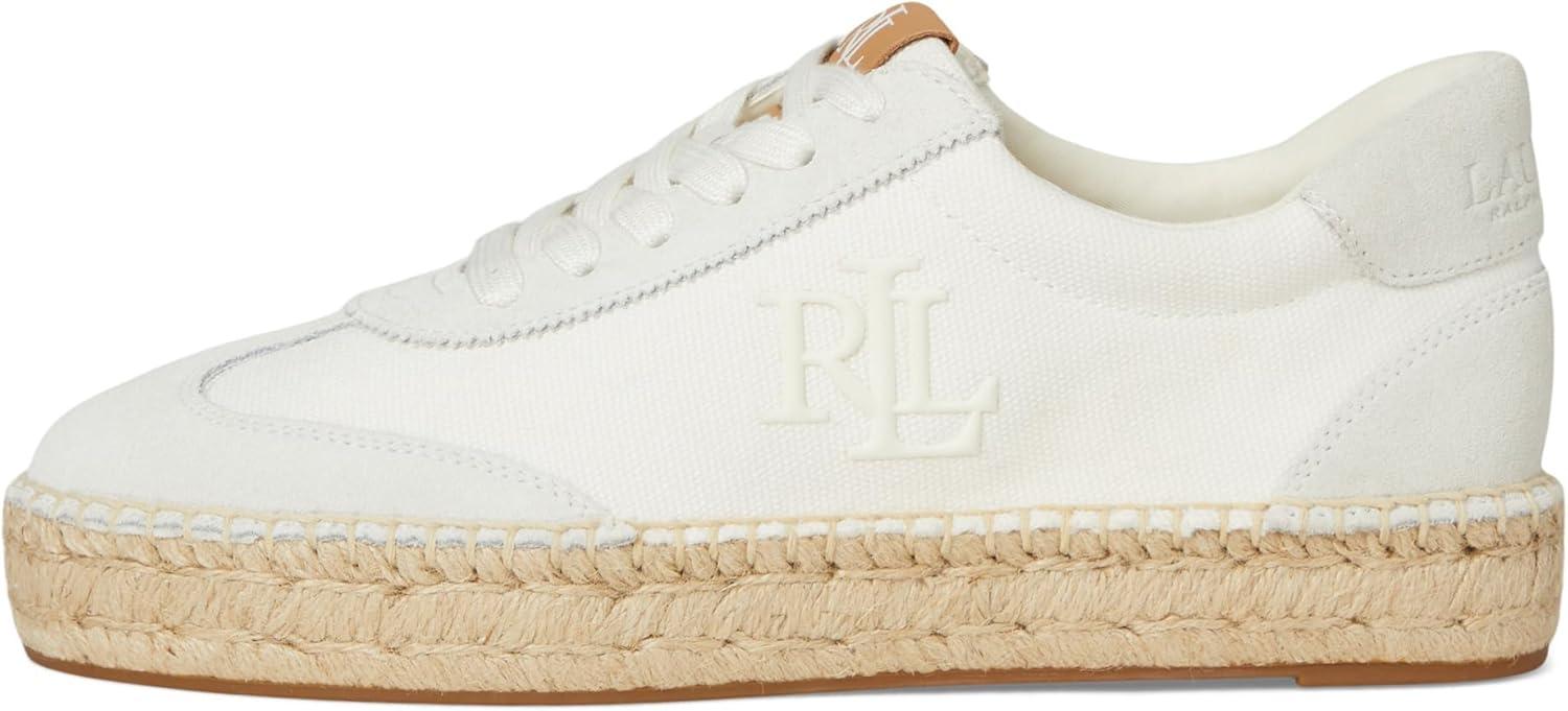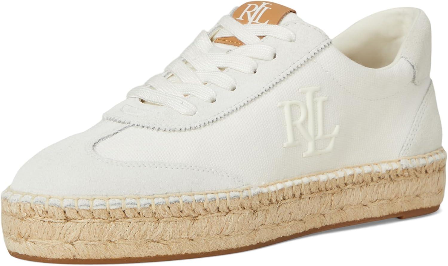 Lauren Ralph Lauren Womens Luize Canvas and Suede Espadrille Sneakers(Snow White/Bianco)