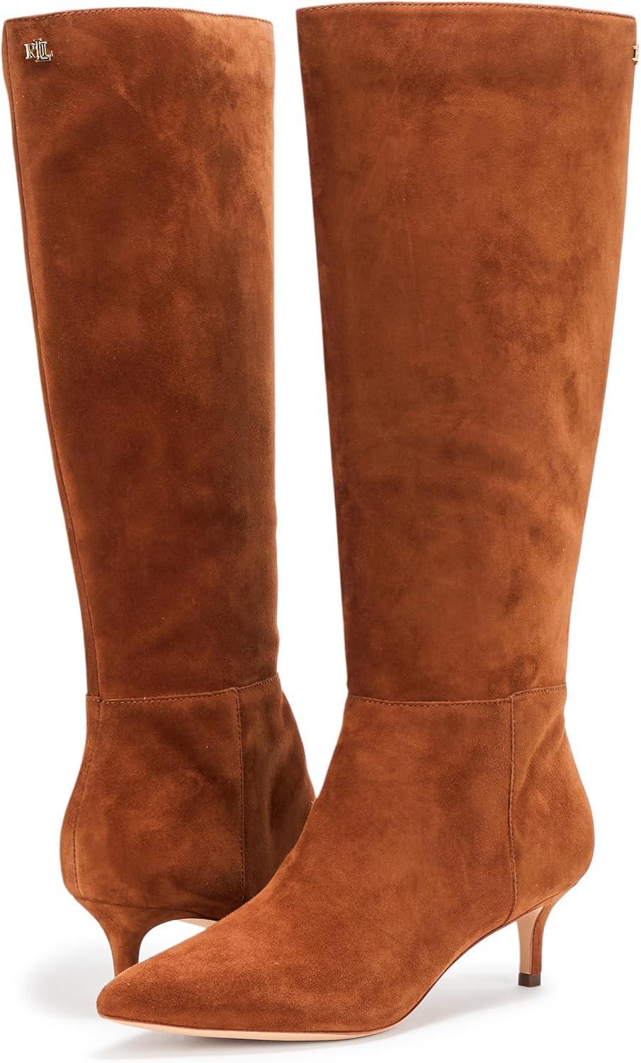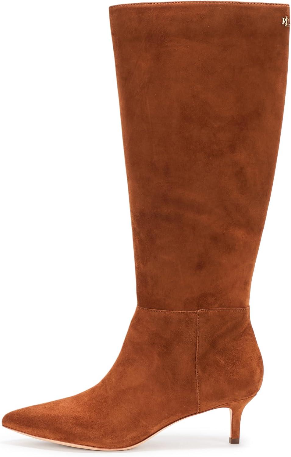 McKay Suede Tall Boot Heel. Crafted with velvety suede, the McKay tall boot features a streamlined, pointy-toe silhouette set on a slender 50-mm kitten heel. An “LRL” logo at the side completes the look. 1.75″ (50 mm) heel height. 4.75″ (12.5 cm) shaft height. 10.75″ (27.5 cm) shaft opening circumference.TK!!!!!! Pointed toe. Side zip closure. “LRL” metal logo at the side of the shaft opening. Padded insole. Buffed leather outsole. Upper: leather. Lining: cotton, polyurethane, leather. Brush away any surface dirt with a clean, soft brush. Imported.